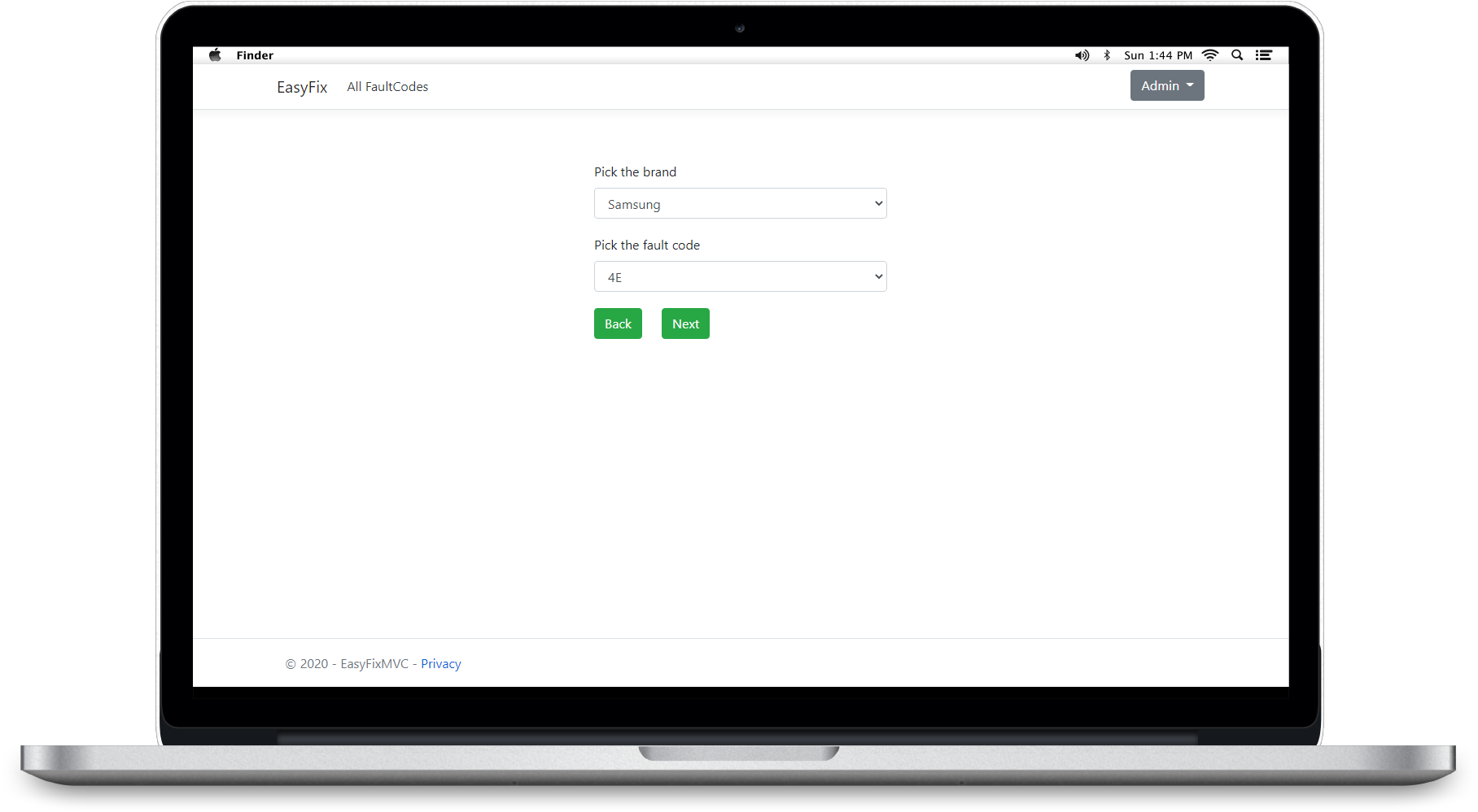 Easy Fix is an ASP.NET Core MVC project created during a ComIT course. It is a web application that allows users easily troubleshoot and repair their home appliances. Users can leave comments on their troubleshooting and repair. Admin functionality allows adding new fault codes and troubleshooting steps to the database.